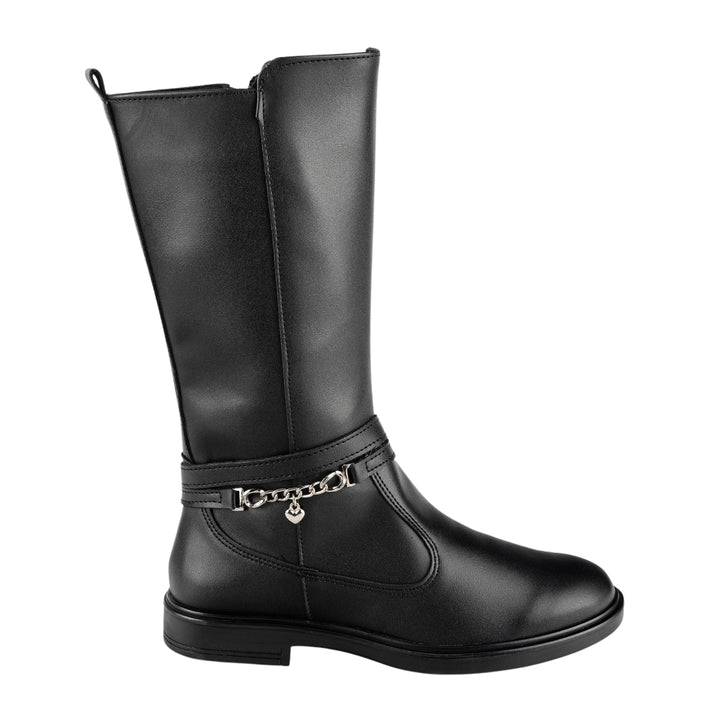 ¡Déjate sorprender como nosotros al conocer este hermoso y moderno modelo Bota Larga Moda Joven Yuyin 06185! Botas largas estilo casual en color negro para niña/jóvenes con un increíble detalle de cadena, cuentan con un tipo de ajuste de cierre al costado para facilitar la colocación sin de dejar de lado la seguridad que te brindaran a cado paso.