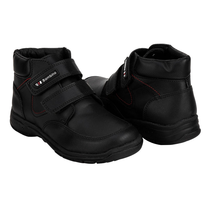 Cuida la comodidad de los pies de tu pequeño con este modelo de Botín Escolar Clásico Bambino Tres Reyes. Botín para niño Escolar con estilo clásico de fondo plano de fácil ajuste al poseer dos cintas de velcro, sé el mas vanguardista de tu escuela, marca ¨Bambino¨. Calzado para niño que añade alegría, comodidad y estilo en cada paso.
