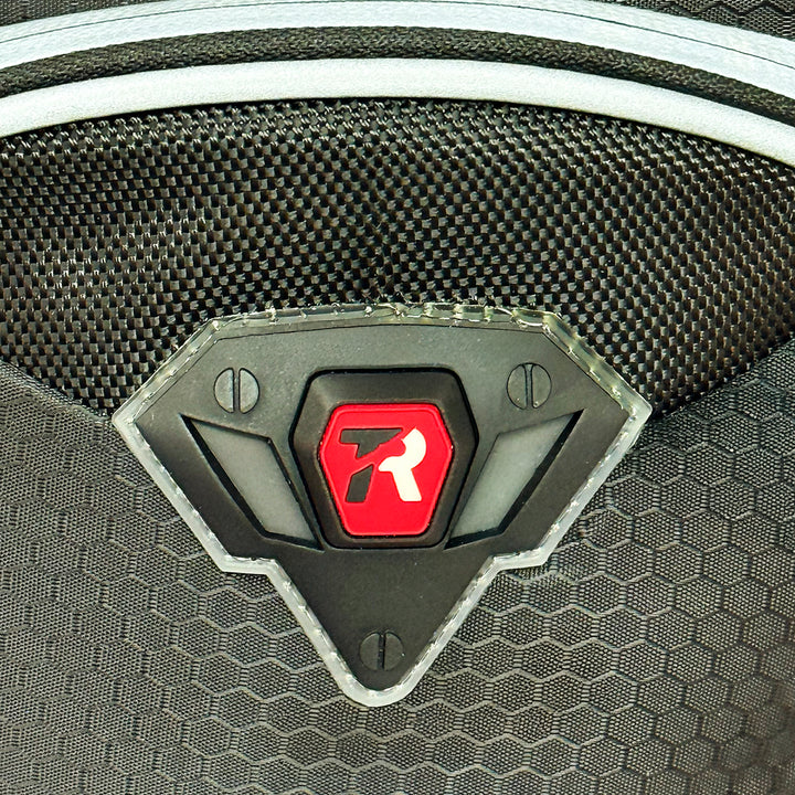 Incorpora elementos de diseño distintivos como el logo de la marca y detalles en rojo, así como un anillo en D frontal para colgar accesorios adicionales.