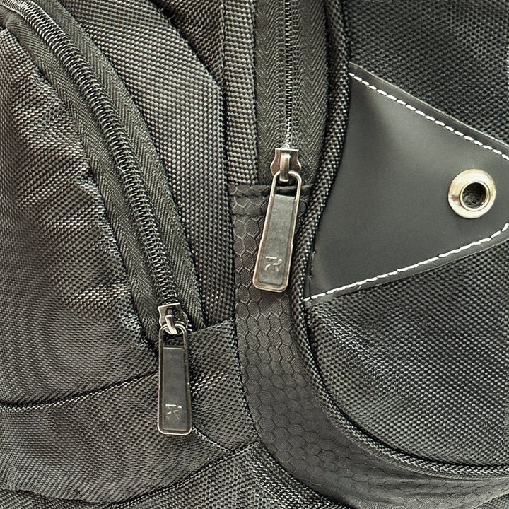 Cuenta con múltiples bolsillos y compartimentos con cremallera, incluyendo bolsillos laterales, que permiten una organización eficiente de tus pertenencias, desde libros y documentos hasta accesorios y botellas de agua.