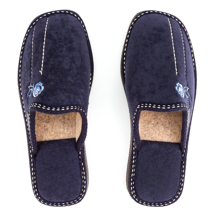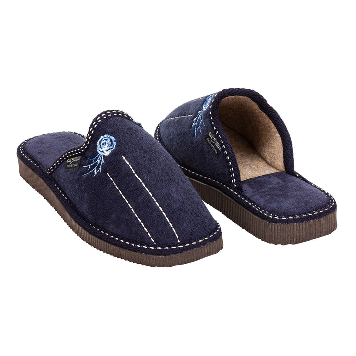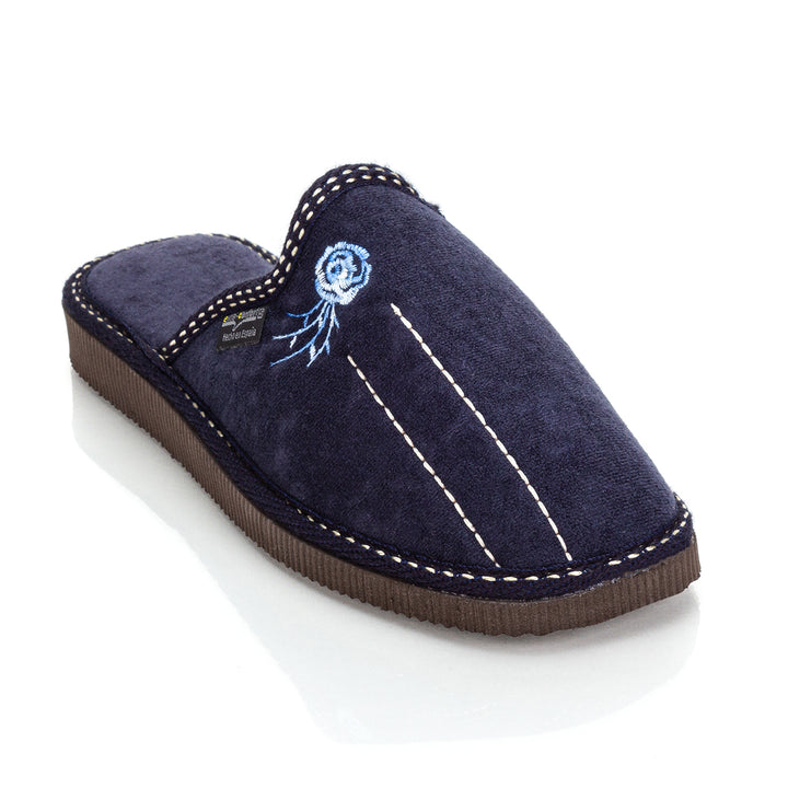 Pantufla Dama Extra Confort 904 Tres Reyes. Calzado para mujer cómodo, suave y caliento de uso doméstico. Pantufla para mujer, abierta y cómoda color marino y maquillaje para mujer marca 'Extra Confort'