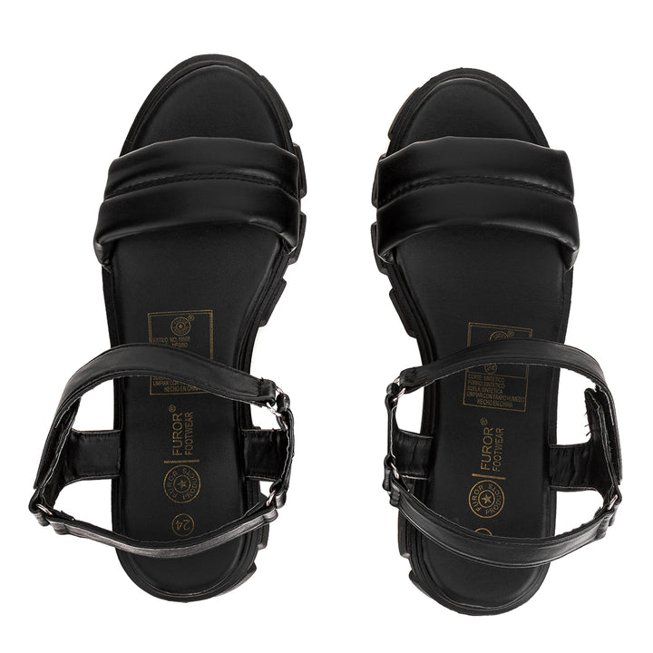 Te presentamos el bonito modelo de Sandalia Moda Dama Hebilla Furor Tres Reyes, que cuenta con una plataforma chunky. Sandalias para mujer estilo moderno, cuenta con tira acojinada y una tira mas en tobillo con hebilla para un ajuste perfecto,, color Negro y blanco marca 'Furor'. Calzado para mujer ligero y casual que lo hace muy cómodo.
