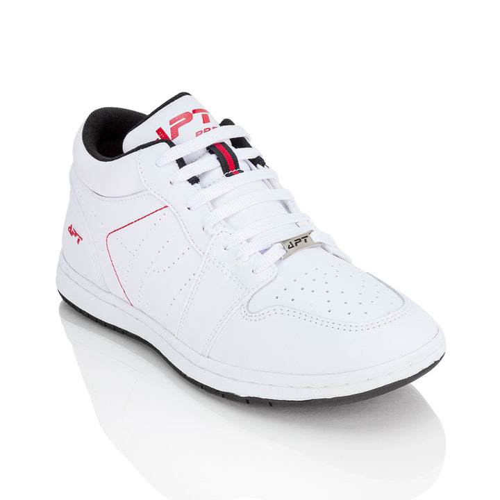 Viste cómodo y a la moda con este modelo de Tenis Bota Niño Blanco Apt 02037. Tenis para niño marca Apt tipo botín transpirables con bordes acolchados, detalles de la marca y suela tipo Mixta (en zig zag y múltiples puntos) todo terreno, combinando lo mejor de espiga y omni. Este calzado para niño te permite una mucho mayor durabilidad y estabilidad en el frenado dando una mejor rotación para cualquier actividad.