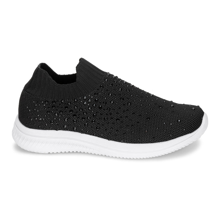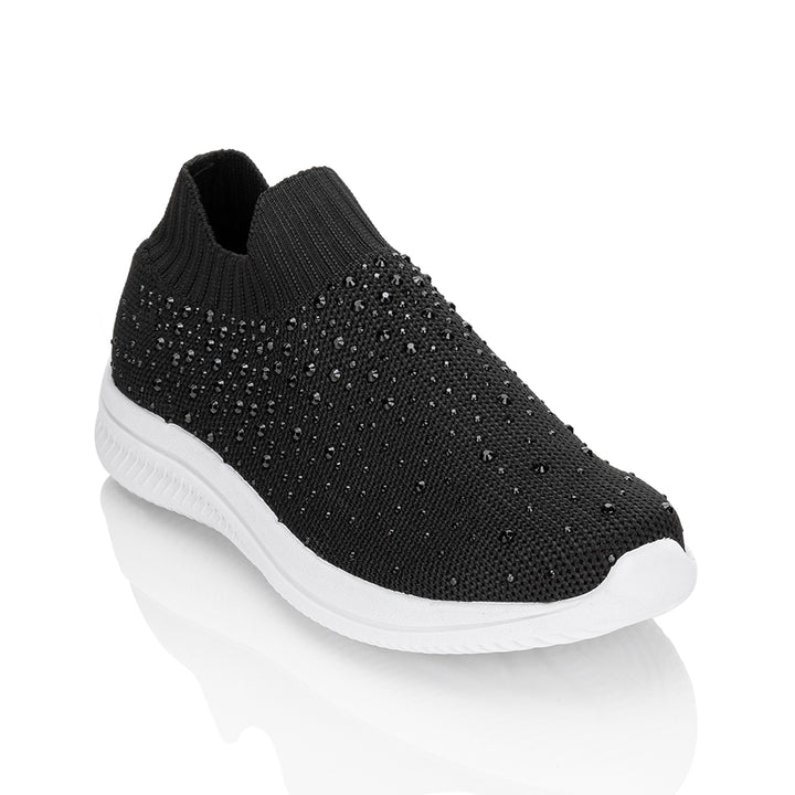 Siéntete cómodo y viste a la moda con este modelo de Tenis Calcetín Casuales Moda Pedrería Dama Stampa Tres Reyes. Tenis para mujer casuales color negro marca 'Stampa', de moda ultra ligeros de calcetín con brillo. Este calzado para mujer te brindará alto confort y estilo único.