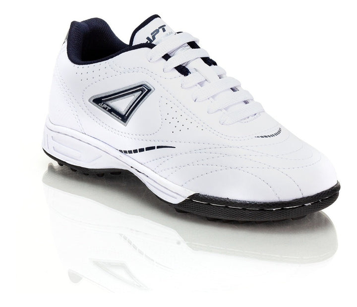 Tenis Fútbol Rápido Apt 722 (2) Tres Reyes. Calzado destinado para la practica de futbol, cumpliendo con las necesidades de los jugadores. Tenis para fútbol 7 y/o fútbol rápido color negro/blanco. Estas zapatillas deportivas cuentan con suela turf adecuada para césped artificial y tierra marca 'APT'