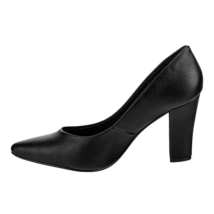 Diseño Clásico y Moderno: La punta afilada y el tacón bloque robusto ofrecen una silueta atemporal que nunca pasa de moda.