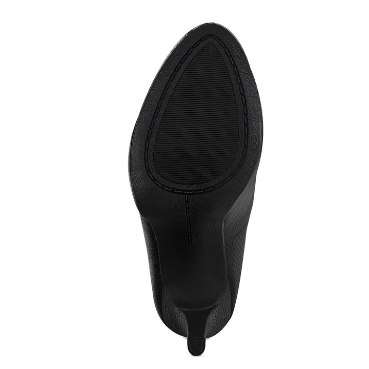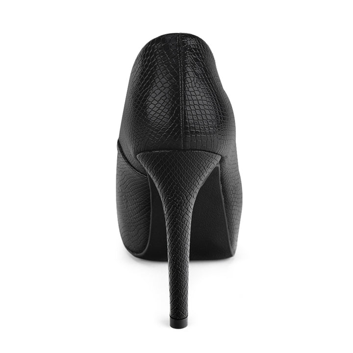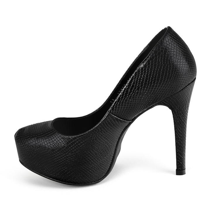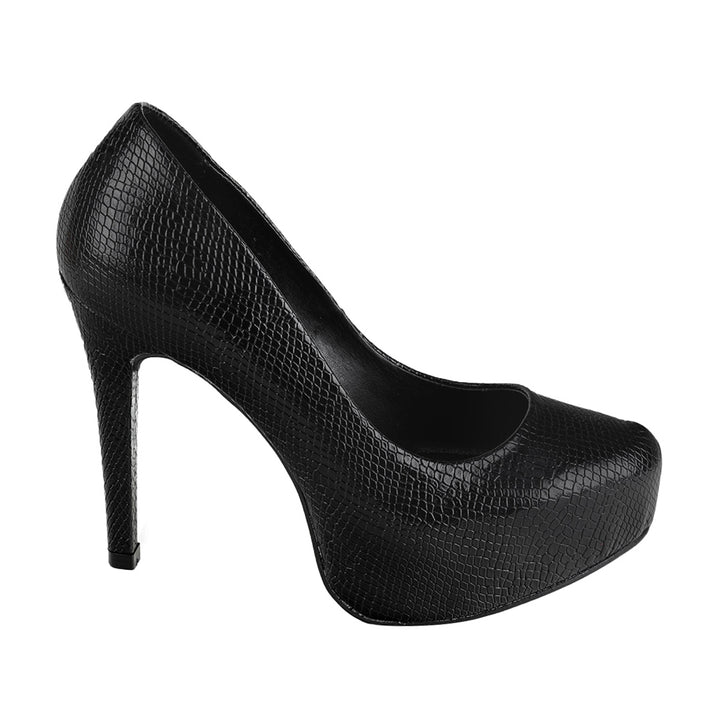 Eleva tu estilo con este modelo de Zapatilla Vestir Plataforma Dama Perugia 04641. Zapatillas para mujer de vestir tipo pump color negro con acabado tipo reptil marca 'Perugia'. Dale protagonismo a tu estilo con este calzado para mujer, combina con todo y su plataforma permite que la uses todo el día sin cansarte.